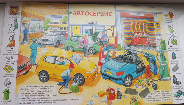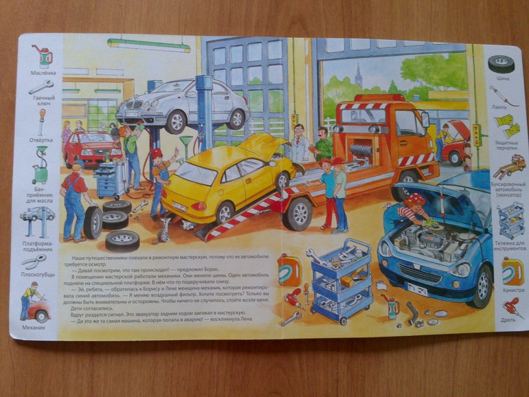 :)))))) но тут столько всего нового!!!В общем,хватит нам надолго,будем учить сложные названия инструментов,приспособлений и машин(таких как автомобиль-кемпинг,эвакуатор или автотранспортер)))Кстати,благодаря этой книжке Андрюша научился находить пешеходный переход!!!!