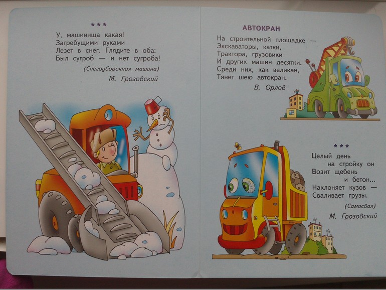 Из книги "Про машины,самолёты,корабли и поезда." выучили много стихов наизусть.В ней есть также загадки и скороговорки(их немного).Читаем ооочень часто и не надоедает.