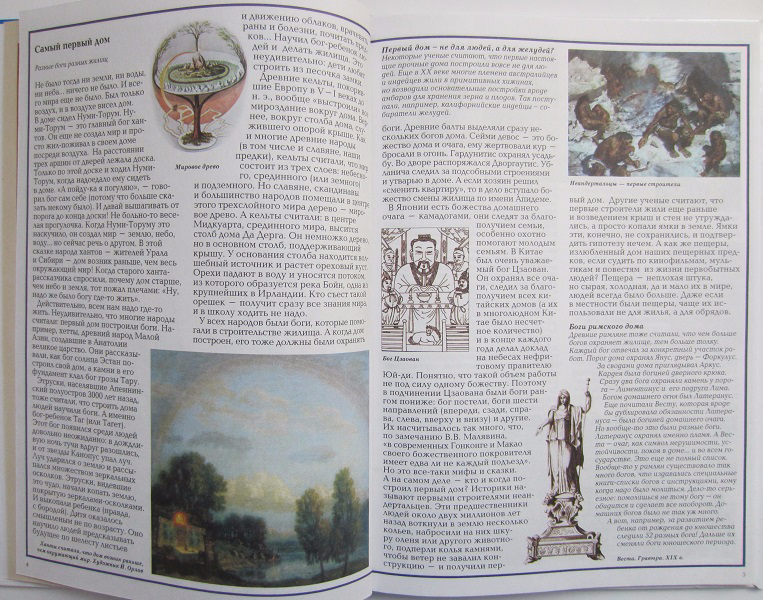 Информации много. Прослеживается идея создания дома для человека с самого её зарождения. Масса сведений из мифологии. Есть привычные рассказы о материалах, из которых дом строят. А есть информация, которую встретила только здесь:- о плотниках,