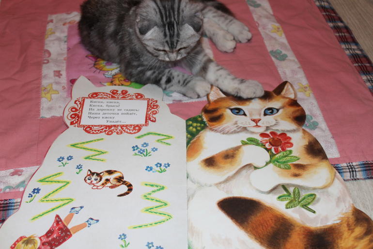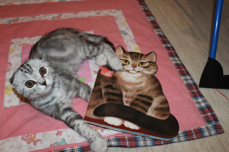 О кошке в кадре: наша кошка никогда особого интереса к чтению книг не проявляла, но во время съемок книги отчего-то вдруг у нее разыгралась большая любовь к чтению)) Возможно это было просто желание попасть в кадр)) Кто их разберет этих кошек!))))
