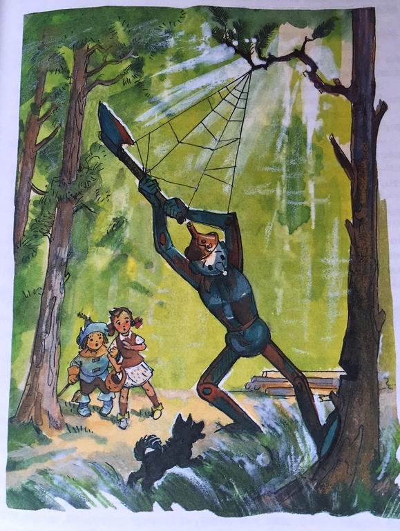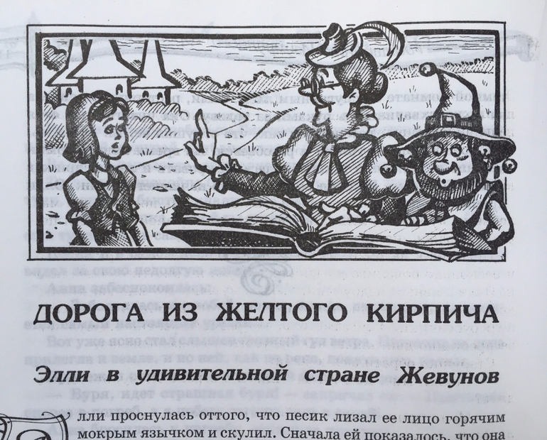 И в первый же вечер пребывания у бабушки мы погрузились в сказочный мир Волшебной страны, вместе с Элли и Тотошкой шагали по дороге из желтого кирпича, знакомились со Страшилой и Железным Дровосеком, преодолевали препятствия на пути в Изумрудный город.