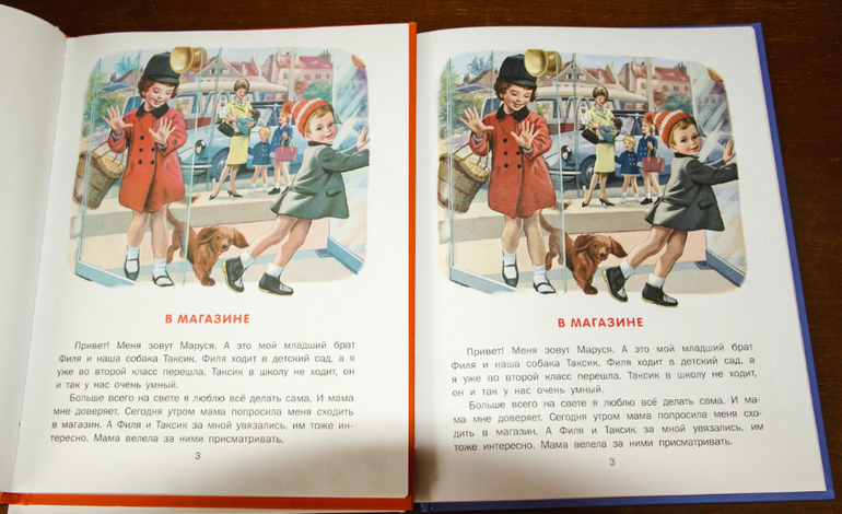 Для сравнения два Маруси. Левая (красная) - первое издание. Правая (синяя) - переизданное.