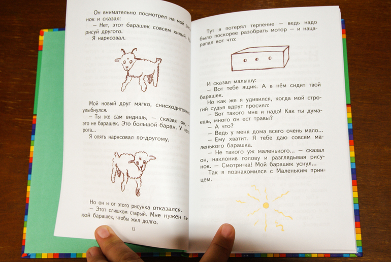 Маленький принц (Эксмо, серия "Книги - мои друзья") - выбрала из-за формата и размера. Очень удобный. У нас есть другие книги этой серии - хорошее соотношение цены и качества. Иллюстрации автора, цветные.