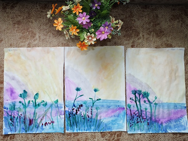 Качество исполнения превосходное. Мне совсем не показалось, что увеличенный формат как-то отразился на иллюстрациях. Они чудесны! Моим девчонкам сразу захотелось взять акварель и изобразить что-то своё. В самом конце наше троекратное творчество))