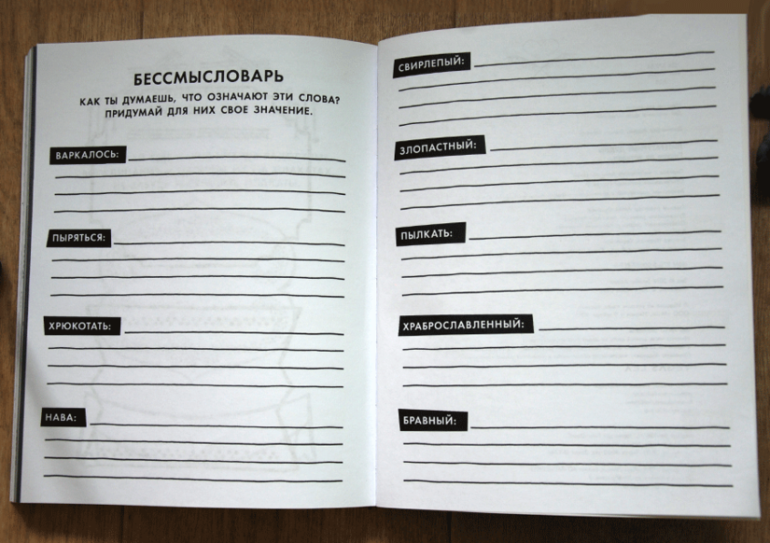 На каждого писателя в тетради отводится 11 разворотов. Сначала идёт 1 разворот с портретом писателя, интересной информацией о нем и его произведениях, дудлами, которые он рисовал на страницах своих рукописей. Затем 10 разворотов с творческими заданиями, на которых есть также познавательная информация. Информация о писателях дана в очень лёгкой и доступной форме, что очень заинтересовывает к прочтению их биографии и произведений.