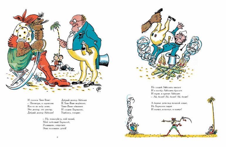 Издательство «Мелик-Пашаев подготовило книжку «Бармалей» с теми самыми, первыми иллюстрациями Мстислава Добужинского. Текст сказки взят в более поздней, доработанной автором редакции (1964 г.).