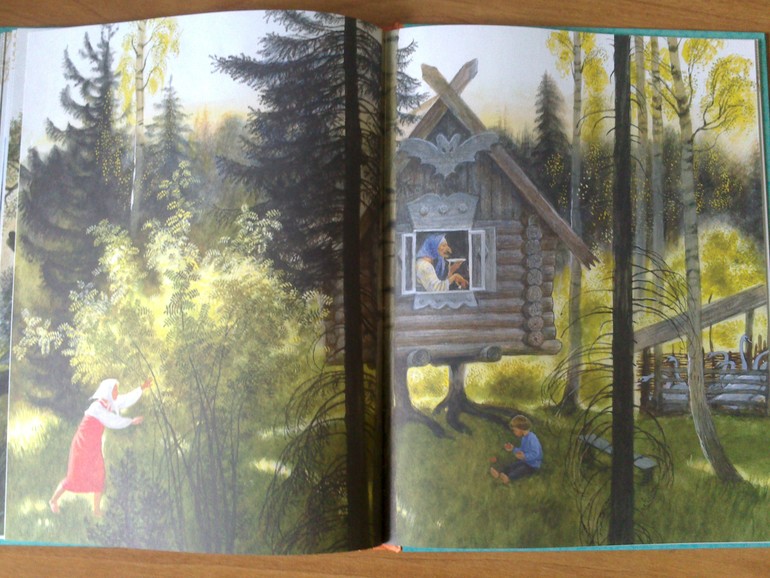 Царевна-лягушка(в обработке А.Н.Толстого).Эту сказку я Андрюше ещё не читала,рановато.Но уверена,что она ему обязательно понравится.Он любит, когда "...ни вздумать,ни взгадать,только в сказке сказать.")))))А ещё:"Избушка,избушка,стань по-старому,как мать поставила..."))))