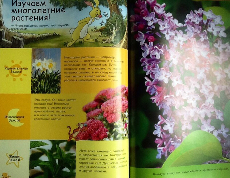 Энциклопедия познакомит малыша с гигантскими деревьями и крошечными семенами, чудесными цветами, вкусными овощами и сочными фруктами, растениями. Можно узнать много интересного о временах года, снеге и дожде, жаре и прохладном ветре. Чудесные фотографии покажут всю красоту ночного неба, звезд, луны.
