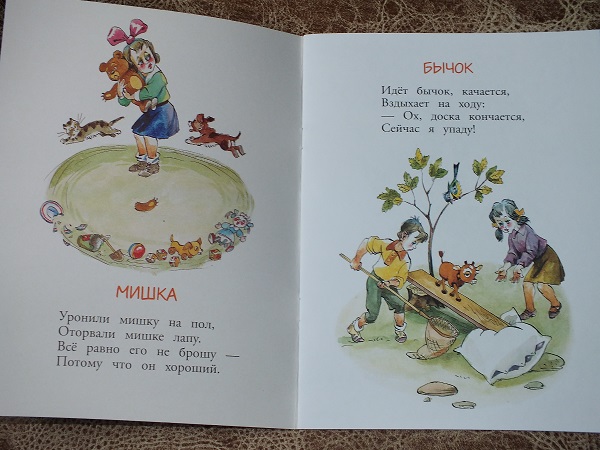 С Барто у нас как-то изначально всё не сложилось. Короткие стишки об игрушках я рассказывала старшей наизусть. Была, кажется, в младенческом возрасте какая-то страшная картонка, которая была сразу же съедена