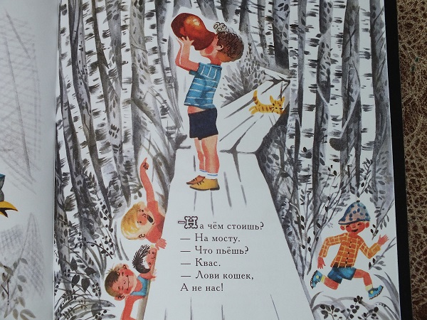 да, я себе в детстве тоже прикупила брошюрку с десятками считалок и без картинок, и была счастлива. Но сейчас без картинок не купят ) Я бы предпочла, кстати, больше считалок и картинки меньшего размера. Так как книга фактически оказалась на один раз. Подорвало что-то на покупку, в библиотеке наверняка куча вариантов есть... Вера? Может, рано еще? Я в школе читала, не раньше 2-го класса. Просто помню, как заходила с этой книжкой в кабинет музыки, а это не раньше 2-го класса было.