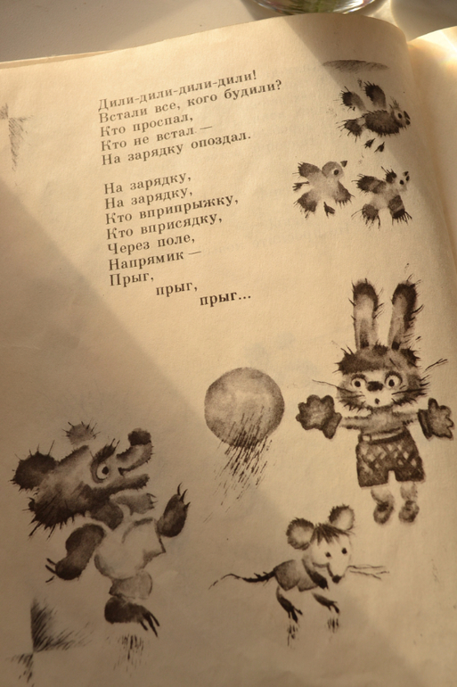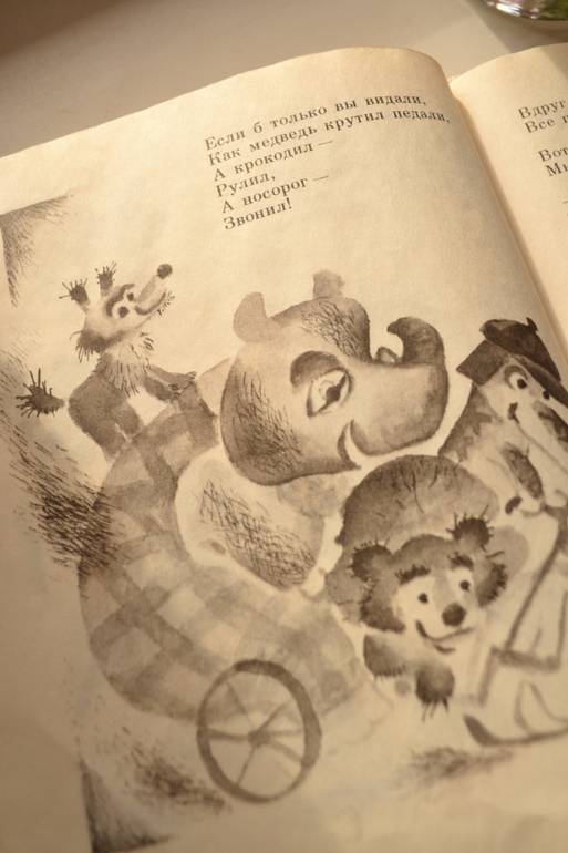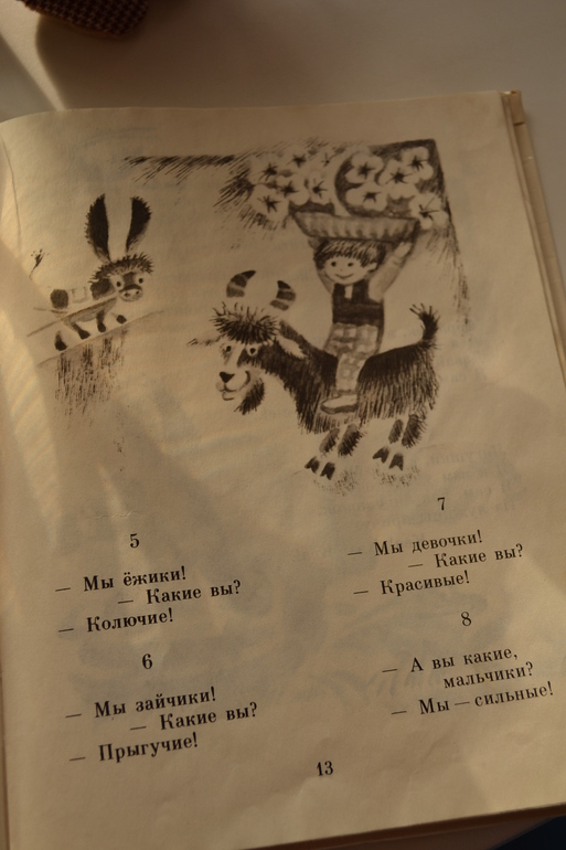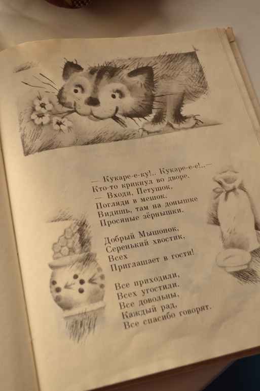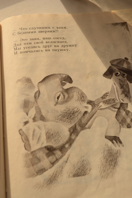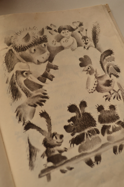 Формат небольшой, бумага тонкая, чуть просвечивает, рисунки черно-белые (есть смазанные и не очень чёткие), художник: Ольга Бай (по стилю мне напомнила Назарова), издательство Детская литература, 1992.