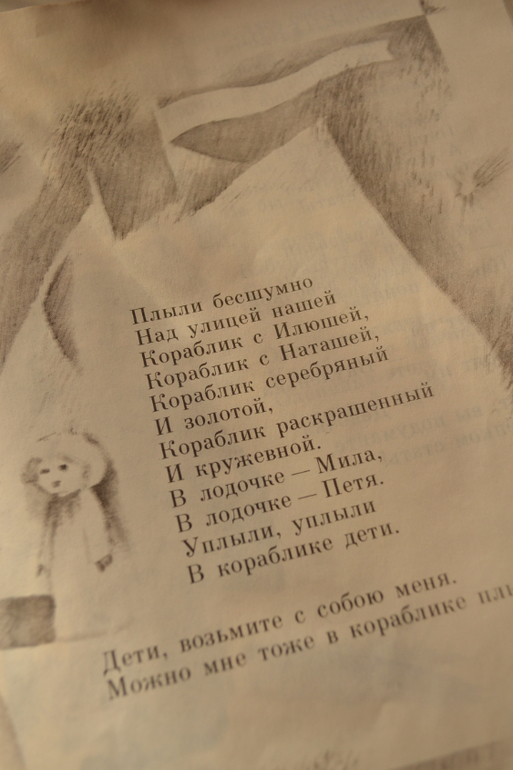 Следующий раздел одноименный названию книги: "Лунный кораблик". Здесь уже появляются философские стихи, есть азбука, цифры, стихи с воспитательным уклоном.