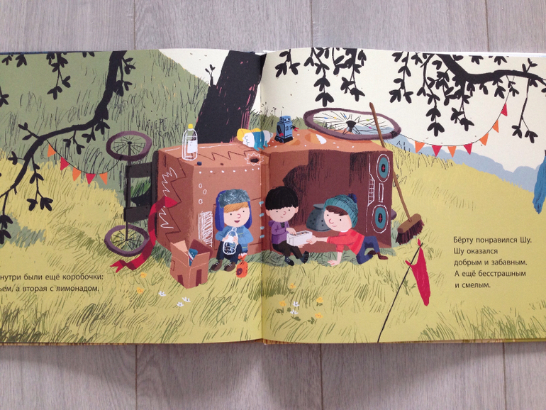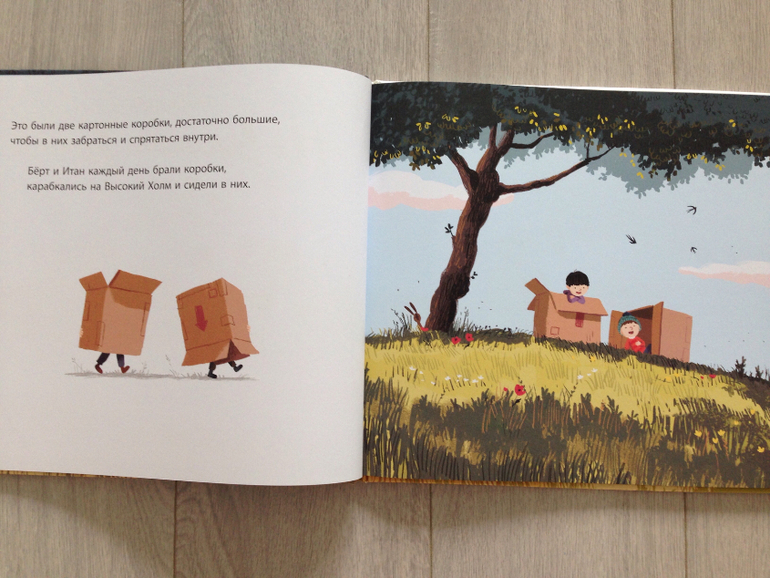 3) Линда Сара и Бенджи Дэвис "На высоком холме". Эта книжка была хитом первую половину июля. Сын выбирал ее много раз для чтения, ему понравилась идея создания машины -"Чудища" из коробок)) мальчик, одним словом)
