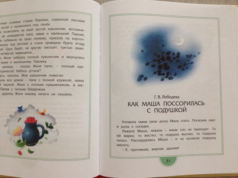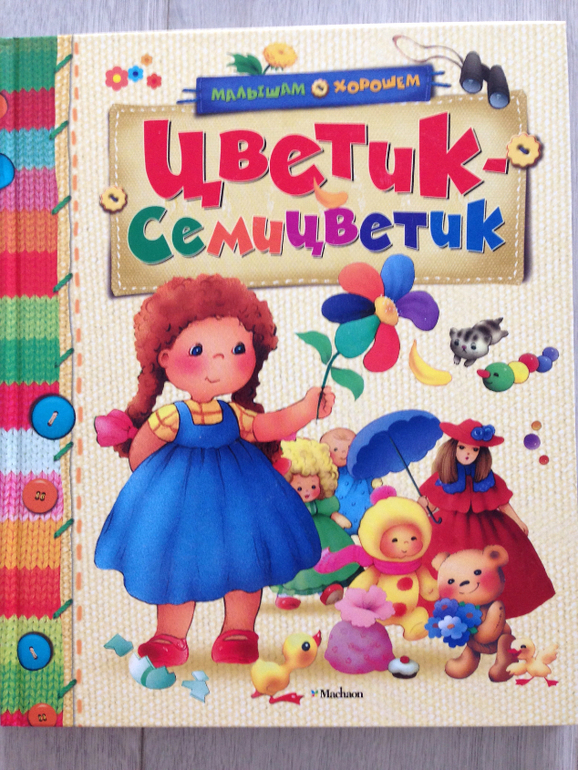 4) "Цветик-семицветик" , сборник рассказов из серии "Малышам о хорошем" от изд. "Махаон". читали три рассказа из сборника: Г.В. Лебедевой "Как Маша поссорилась с подушкой", "Одуванчик" и "Приключения старой куклы" Г.А.Каменной. (рассказы "Цветик-семицветик" и "Дудочка и кувшинчик" не читали, считаю - рано для такого возраста). Сыну очень понравилась "Как Маша поссорилась с подушкой", читали перед сном очень много раз. теперь он всех девочек по имени Маша делит на Машу хорошую и Машу плохую)) в рассказе - Маша плохая)) "Одуванчик" тоже сыну понравился, а "Приключения старой куклы" - сказал для девочек ( у моего сына давно все делится "для мальчиков и для девочек").