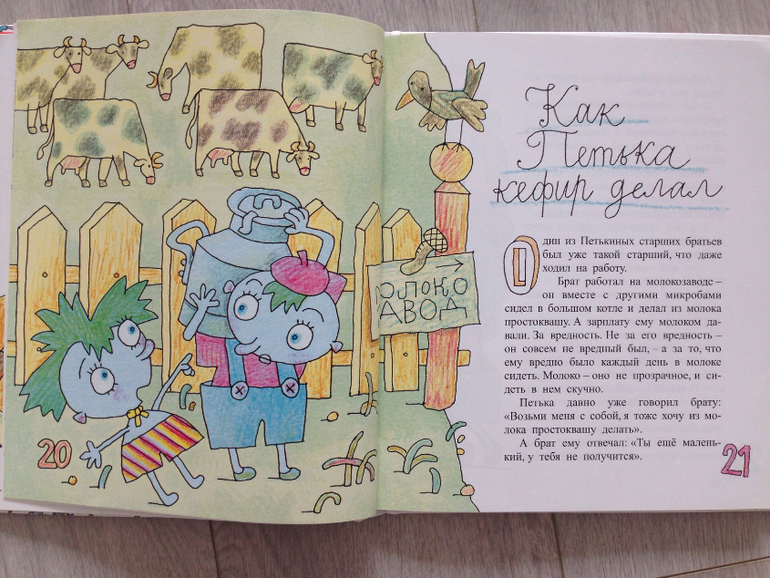 5) Григорий Остер "Петька-микроб". Книгу я покупала на вырост, но сын увидел в привезенном заказе и попросил читать ее сейчас. В итоге, стала тоже хитом у сына, перечитывали много раз, рассказывает все главы, особенно нравятся главы про Петькиного друга Ангинку и как Петька кефир делал.