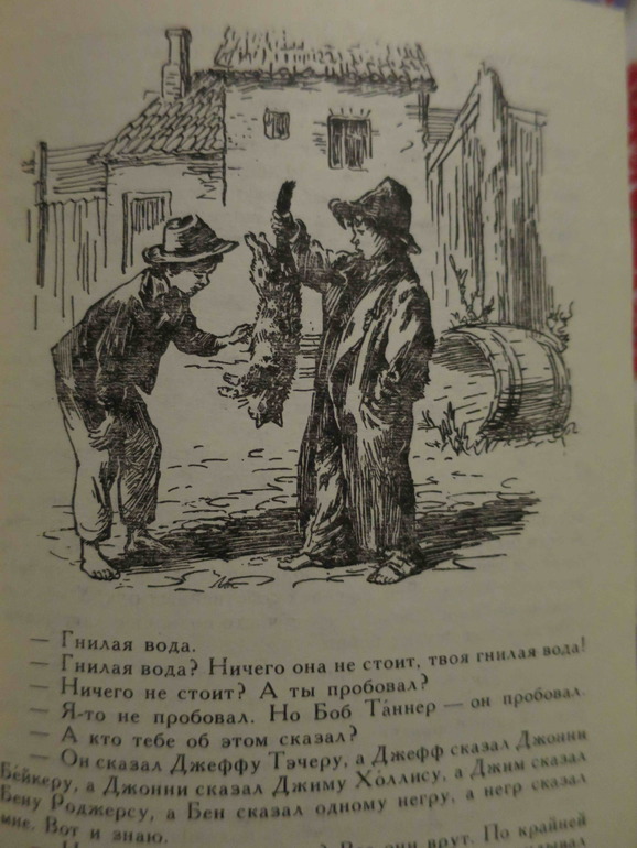 В начальных классах просили всем классом учительницу прочесть нам книгу про Тома Сойера, которую принесла в школу одноклассница. Но та (учительница) заявила, что нам рано читать такие книги!... Поэтому знакомство с книгой состоялось позже, в 5 классе взяла у подружки почитать. Запомнились илл.-и, поэтому именно с ними и выбрала книгу: