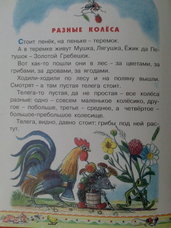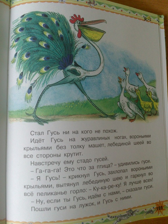 Но в этом издании сказка "Петух и краски" злостно обрезана, нет лисы с лисятами. Т.е. только начало и сразу конец сказки, из-за этого и смысл весь утерян.