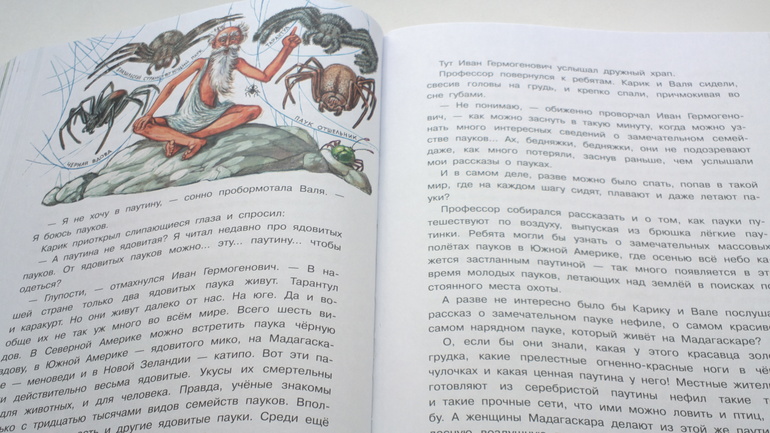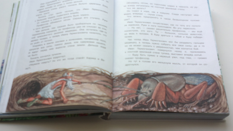 Единственное, чего я боялась - это сцены сражений профессора с насекомыми, но оказалось напрасно- сын прекрасно все понял. Иллюстрации к этим сценам достаточно мягкие - без агрессии.
