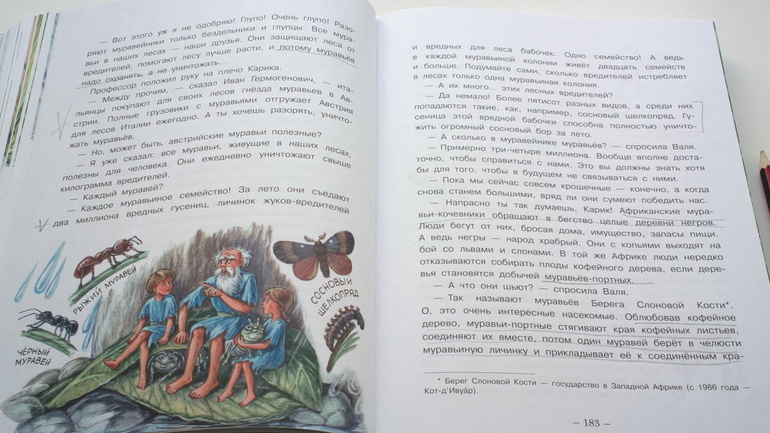 Книга для нас с сыном оказалась очень полезной, в самом начале лета мы узнали столько новой и интересной информации о жизни насекомых и растений, что когда встречали насекомых в парке, то сынок вспоминал какой-нибудь научный факт или сцену из книги.