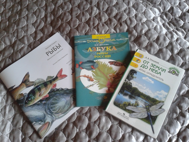 Ихтиологию прочитали взахлеб сразу раза три, на азбуке застряли, будем изучать постепенно, а атлас это наша настольная ежедневная книга на даче уже второе лето. По ней мы идентифицируем пойманных букашек и разные растения и грибы...