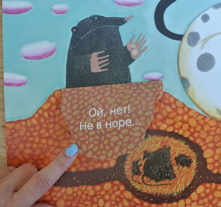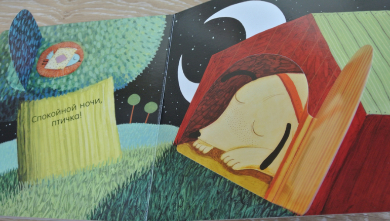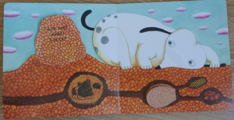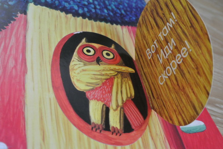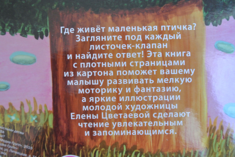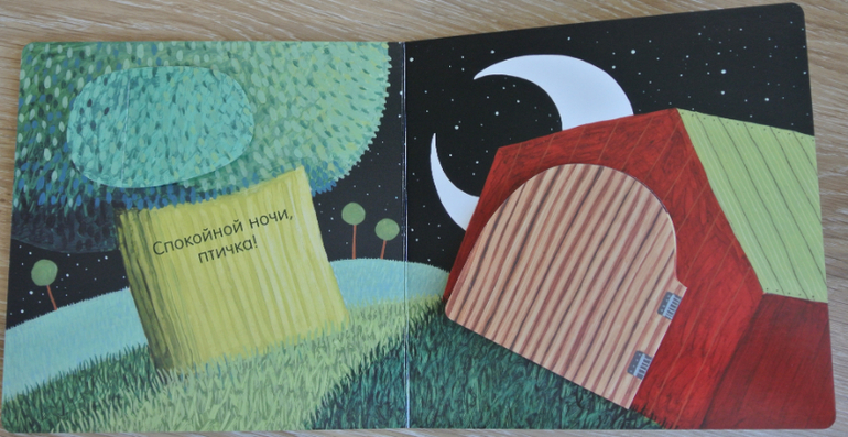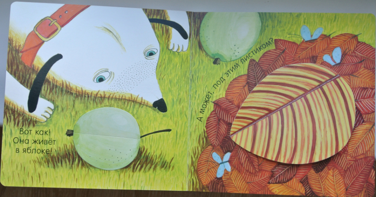 Сами клапаны мне, кстати, показались тонковатыми. Большие (будка собаки и сова) рискуют в ближайшее время сильно помяться/заломиться при быстром перелистывании дочерью.