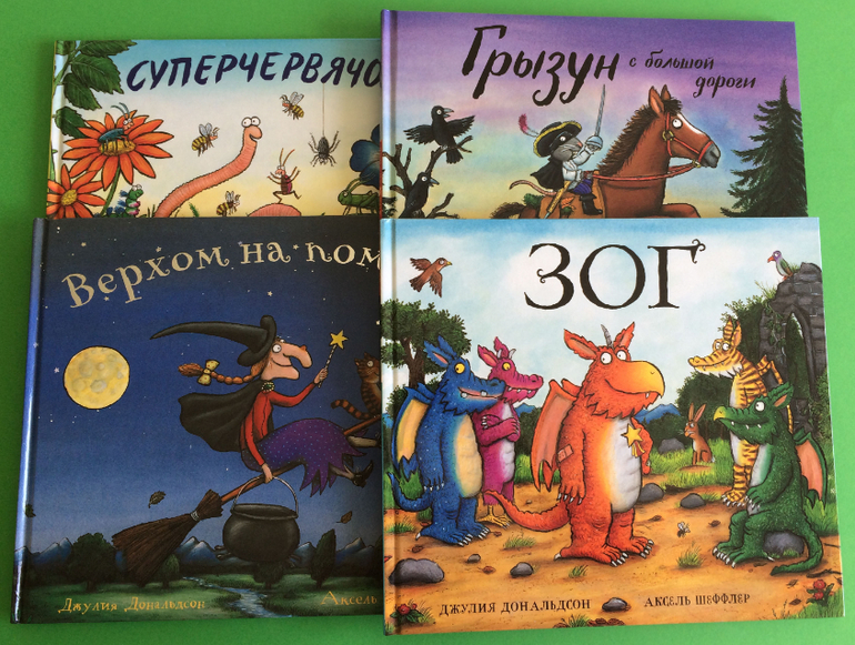 Продолжаем читать ее книги, восторг дочки меньше не становится. Больше всего раз просила Зога, наступая на пятки дракону на второе место втискивается хамоватый Грызун, за ним пытается поспеть дружелюбная ведьмочка. Как всегда юмор, отличные иллюстрации и поиск морды Груффало в каждой книге.