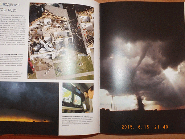 Так вот. Нашел он эту книжищу и очень обрадовался. Обсудили с ним грозы, ураганы, смерчи, торнадо, пожары, снег и дождь, облака и тучи, радугу и полярное сияние, наводнения и много чего еще. Картинки бесподобные. И очень ребенок под впечатлением. Нет, наверное все же синоптиком будет.