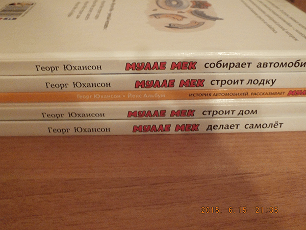 Следующее наше все - это Мулле Мек. Честно, как же мне надоело его читать три раза на дню! Причем все подряд! Долго мы его не читали, наверное месяца два. И вот сын его обнаружил на книжной полке (зачастил он полочку разглядывать), очень обрадовался и теперь мы его снова читаем.