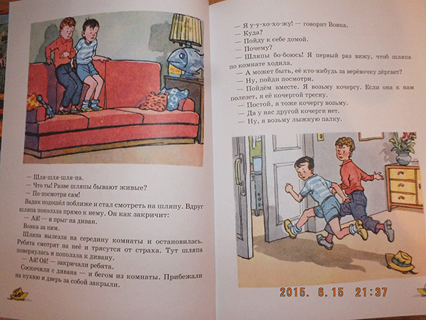 Понятно, что больше всего нравятся пока знакомые рассказы типа "Живая шляпа", "Затейники", "Фантазеры", "На горке". Понравились еще "Автомобиль" и "Метро". В метро Семен любит ездить, наверное, поэтому и понравилось.