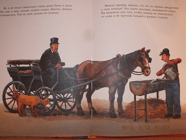 Эта книга отличается от предыдущих. В ней нет истории о том, как Мулле что-то придумал и что-то смастерил. Наверное, можно рассматривать эту книгу, как энциклопедию. В ней рассказывается, что раньше все ездили на лошадях, машин то не было. У Семы были такие глаза) Как не было машин?) КАК? А совсем недавно мы с папой уговорили его покататься на лошадке в парке. Он раньше отказывался, а тут согласился. Прокатился. Запомнил. И вот когда читала эту книгу, спрашивала его, катался ли на лошади. И как? Быстро? Говорит, что медленно. "Конечно, - говорю - ведь лошадям требуется еще и отдых, поспать, поесть, попить. Далеко не уедешь". Семен соглашается, и дальше слушает книгу с удовольствием.