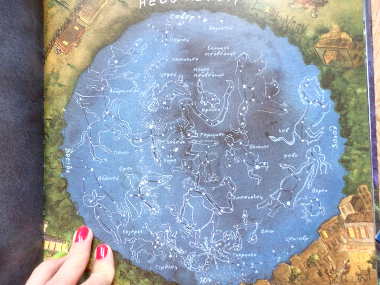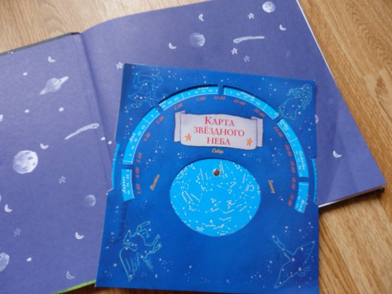 Но давайте откроем Звёздное небо. И сразу нас встречает Карта. Карта подвижная, покрутив диск с созвездиями, можно выставить дату и время и выяснить что именно видно. Надеюсь, что время по Москве :)
