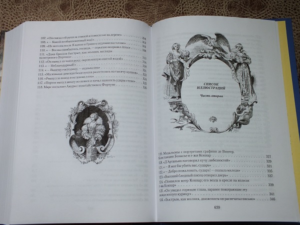 Иллюстрации практически на каждом развороте, бывает даже по две. Иногда картинки встречаются через разворот. Но их реально много! В конце книги есть список иллюстраций на 5 разворотов, а содержание книги на два неполных листа. Делайте выводы)))