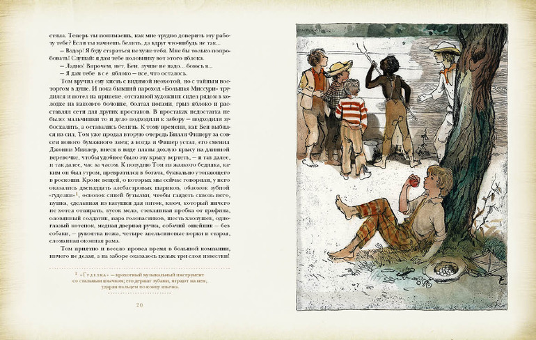 Так смачно Том грызет яблоко, пока его добровольные помощники красят забор! И полосатая тельняшка на картинке присутствует )