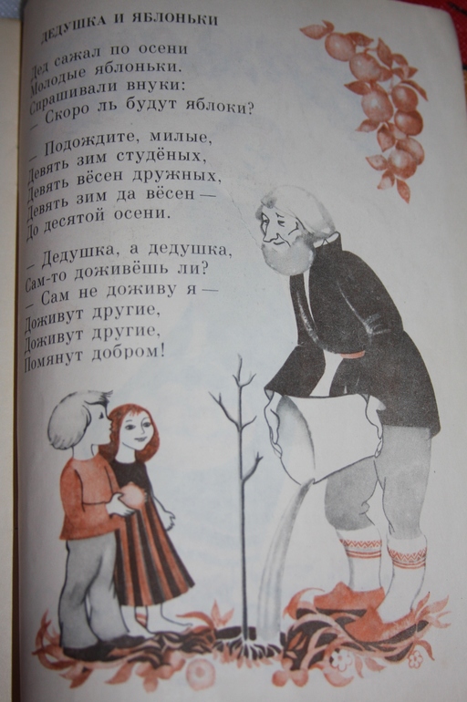 И еще несколько ребятишек с яблоками и яблонями от Барто: