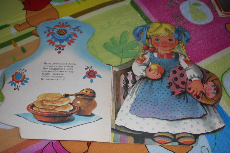 В общем, что я хочу сказать: Настя, большое вам человеческое СПАСИБО. Мы с дочкой провели прекрасные несколько часов, дружно рассматривая книги, это просто праздник какой-то! Часто в суете забываешь о прекрасных мелочах, которых так много вокруг, а такие мероприятия позволяют посмотреть на привычное свежим взглядом, увидеть знакомое с новой стороны. Теперь я снова помню, что на дочкиной переодевательной клеенке нарисованы яблоки и груши, а на простынке - полосатый тигр и пчела)) Спасибо!