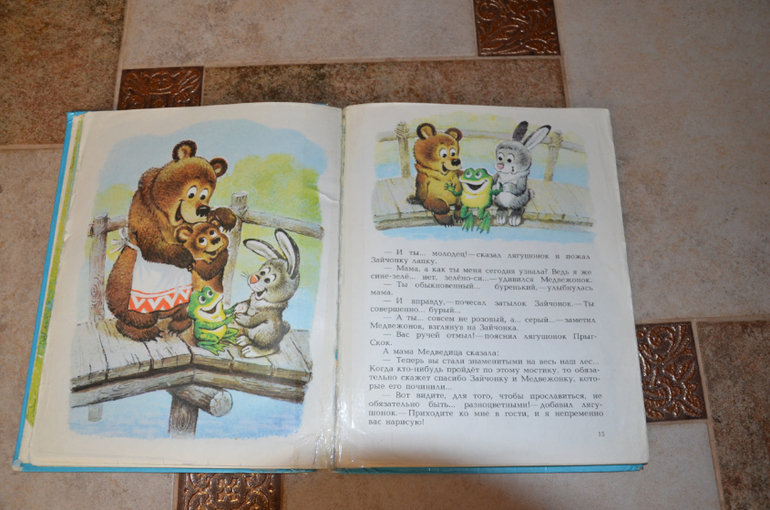 В детстве у меня была книга Михаила Пляцковского "Разноцветные зверята". Голубая книга формата А4 с маленькими сказочками и чудесными иллюстрациями! Поначалу я хотела ее забрать, но книгу изрядно поюзали младшие, и, увидев в каком она состоянии, я решила купить новую. Нашла, купила.. но при ближайшем изучении обнаружила, что это совершенно не то, что я хотела! Новую оставила, но и старую забрала в свою книжную реанимацию.