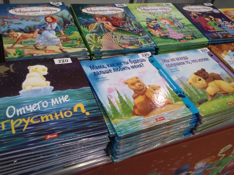 Карьера-Пресс, аккуратно оформленный стенд, приветливые девушки. "Считалочка" теперь есть на скрепке и "Машинки" Скарри тоненькие стали. В планах издательства издавать сразу два варианта книг тонкие и в твёрдом переплёте, хорошо.
