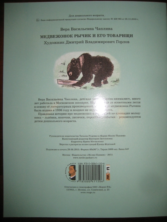 Вера Чаплина "Медвежонок Рычик и его товарищи" (Мелик-Пашаев, 2015)