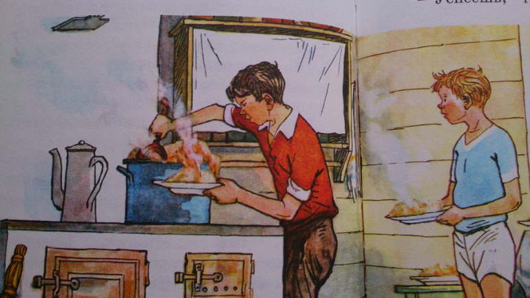 И еще одна каша, правда не от Сороки, а от Миши. "Фантазеры", ил. Семенов И.М.