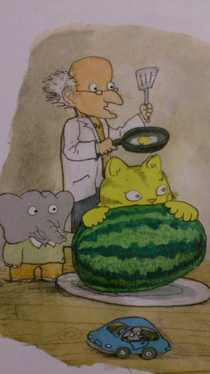 Что приготовлено еще? Яичница-глазунья! Профессор Глюк-Оз в роли повара или кока. Как в груше называется эта должность?) "Невероятная история о гигантской груше", ил. Стрид Якоб.