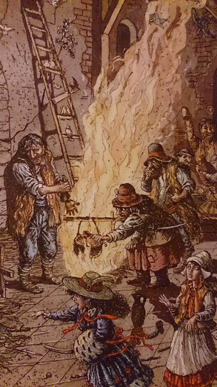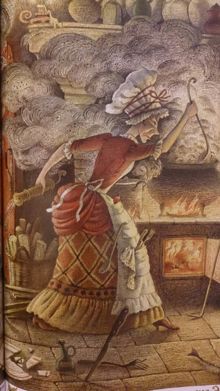Второе "непонятно что" я встретила в "Снежной королеве", ил. Диодоров Б.А. Повар-разбойник, пламя намного выше людей. Готовится просто аЦЦкое блюдо)