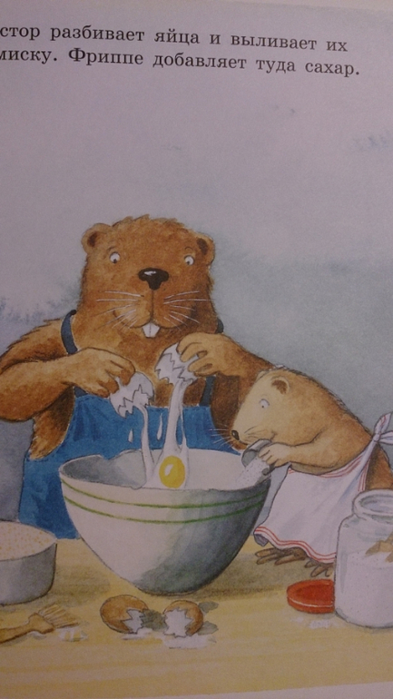 Давайте теперь десерт! Для начала Кастор замесит тесто. "Кастор печет пирог", ил. Клинтинг Ларс.