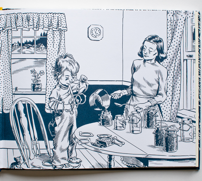Саша с мамой варят черничное варенье, чтобы всю зиму пить с ним чай и радоваться. Роберт Макклоски "Черника для Саши".