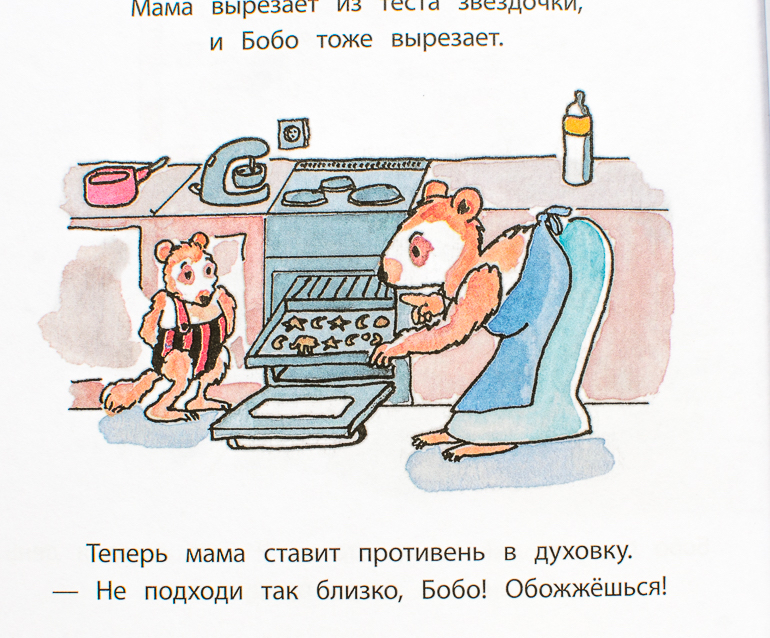 Мама Соня печет фигурное печенье на день рождения Бобо, Бобо, конечно, помогал! Маркус Остервальдер "Приключения маленького Бобо".