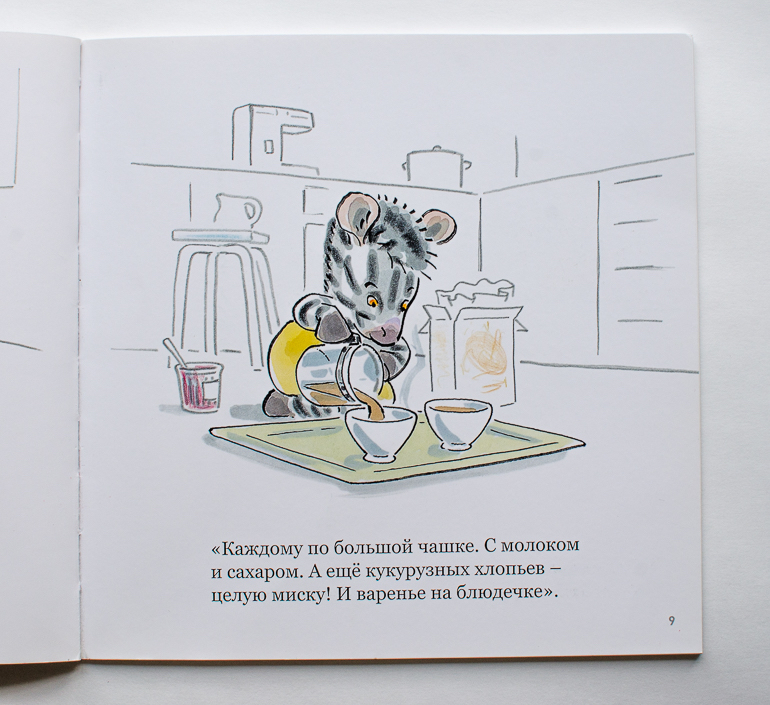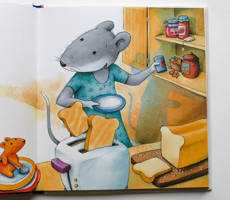 А здесь она делает гренки с корицей, чтобы выманить Мико из шкафа. Очень находчивая мама! "Двойной день рождения", художница Штефани Роэ.