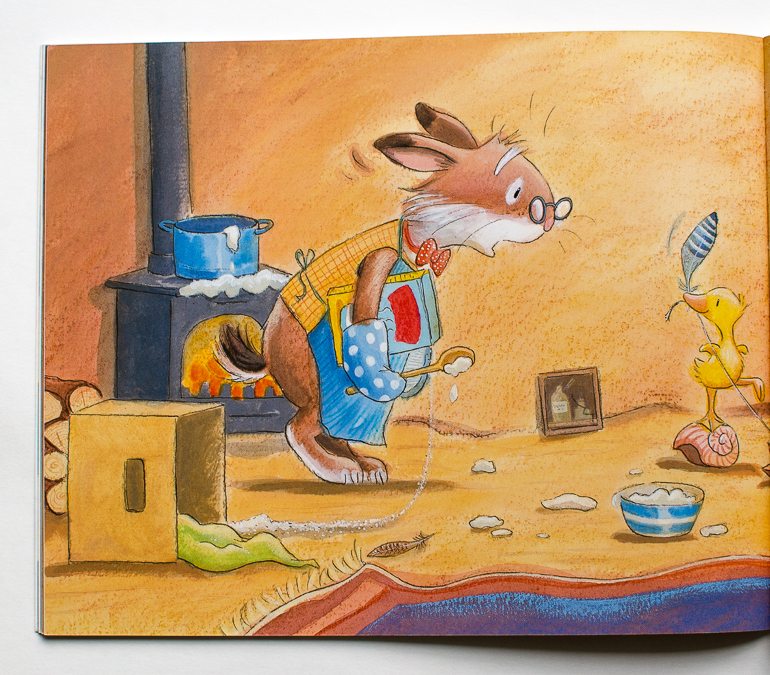 У аккуратиста Кролика на плите убегает утиная каша. "Утиная каша", художник Тим Уорнс.