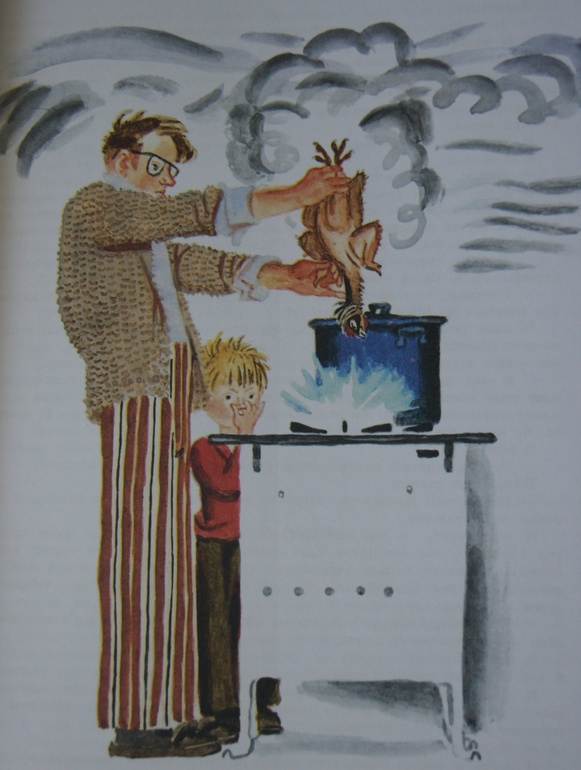 А еще Дениска Коравлёв с папой приготовили чудесный куриный бульончик! Худ. В. Лосин "Денискины рассказы".