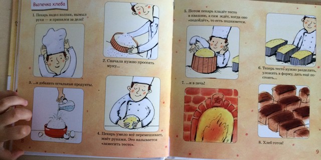1. Начну с самого, на мой взгляд, важного! С хлеба! Ведь, как известно, хлеб - всему голова! Процесс его выпечки не так прост и лучше всего его проиллюстрировала Диана Лапшина в книге Инны Карповой "Пекарь" (серия "Кем быть?")