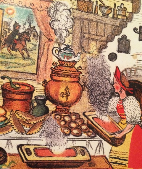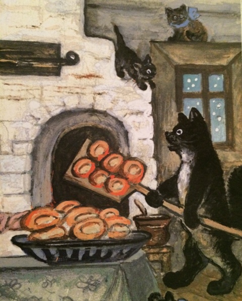 2. Кто только не занимается выпечкой у Васнецова... и кот, и Жучка, и Марфуша, а какое богатство тут и плюшки и калачи, пироги и ватрушки, в общем, если голоден, то лучше его не брать на чтение))