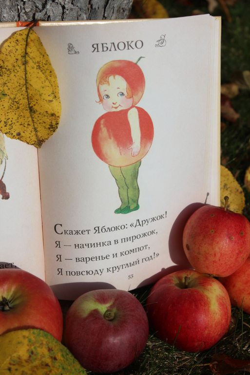 Вика быстро выучила практически все стишки и вспоминает их при случае. Например, если поднимается сильный ветер, она рассказывает стишок про помидорчик, я пью кофе - про кофе. Некоторые стишки можно использовать как загадки. Оглавления нет, поэтому напечатаю J